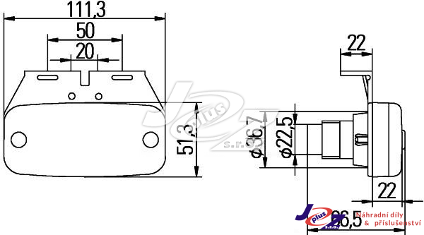 mont. strana: levá mont. strana: pravá Počet LED diod: 2, Pocet svetelných funkci: 2, Doplnkovy vyrobek/ doplnkove info: s drzakem, Jmenovité napětí: 24 V, proud [A]: 0,05 A